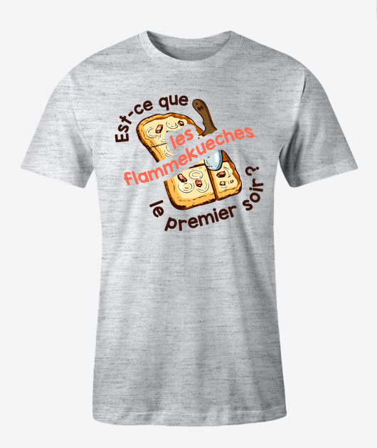 EST-CE QUE LES FLAMMEKUECHES LE PREMIER SOIR ? En voilà une question importante en Alsace Made in Alsace © - Depuis 2004, la marque pionnière et incontournable des amoureux de l’Alsace, ses tee-shirts (dont une gamme bio), ses produits dérivés. Pensés en Alsace par des alsaciens et imprimés fièrement, avec amour, en France. Uniquement sur internet.